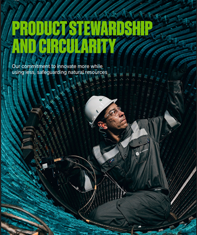 In addition to the reduction of raw materials, we utilize a circular economy framework for using recycled materials in our equipment, including recycled copper and aluminum as well as recycled steel and oil for transformers. We are dedicated to an improved product lifecycle.